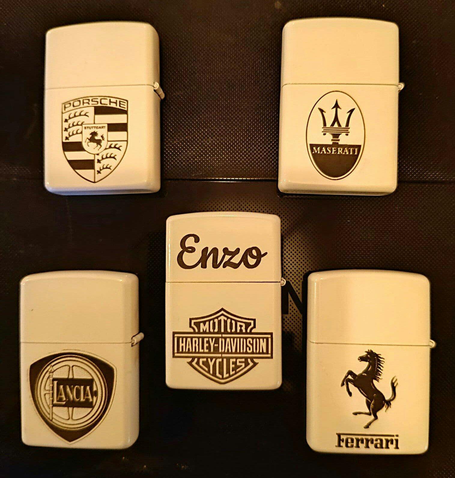 metallo bianco stampa accendini Con scatola di Latta contenente la prima ricarica di benzina.