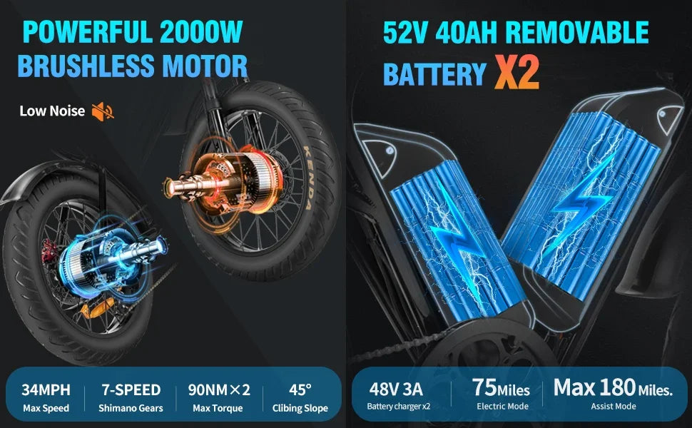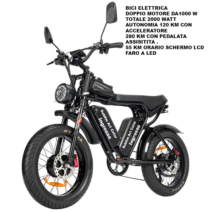BICI ELETTRICA CN DOPPIO MOTORE bici elettrica per adulti, batteria 2000W 52V, 40AH, moto elettrica Max 50-180 miglia, bici da cross per pneumatici grassi da 20"