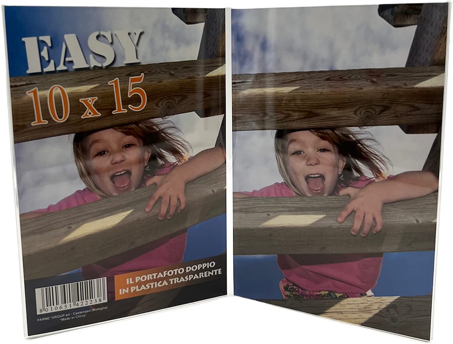 plexiglass per 2 foto 10x15, porta menu o portafoto da tavolo di design moderno e minimalista. Espositore Cornice verticale ideale anche come porta listini trasparente