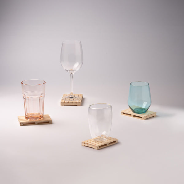 Sottobicchiere in legno a forma di pallet.