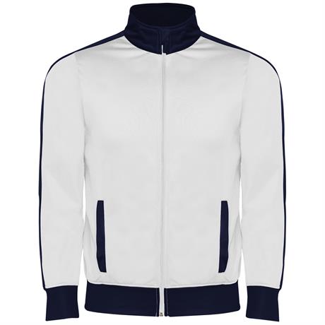 Tuta composta da giacca e pantaloni. 1.- Collo alto con protezione zip. 2.- Tasche frontali in colore a contrasto. 3.- Polsini e vita in costina 1x1 in colore a contrasto. 4.- Zip centrale con copri cuciture interne. 5.- Pantaloni con girovita elastico e cordoncino regolabile con impuntura di sicurezza e due ampie tasche laterali . 6.- Interni in velluto molto confortevoli. 7.- Cerniere sulle caviglie dei pantaloni.