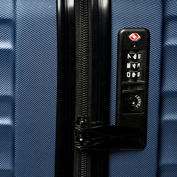Valigia trolley rigida in ABS resistente. Due scomparti principali e tasca interna a rete. Blocco di sicurezza TSA incorporato incluso.